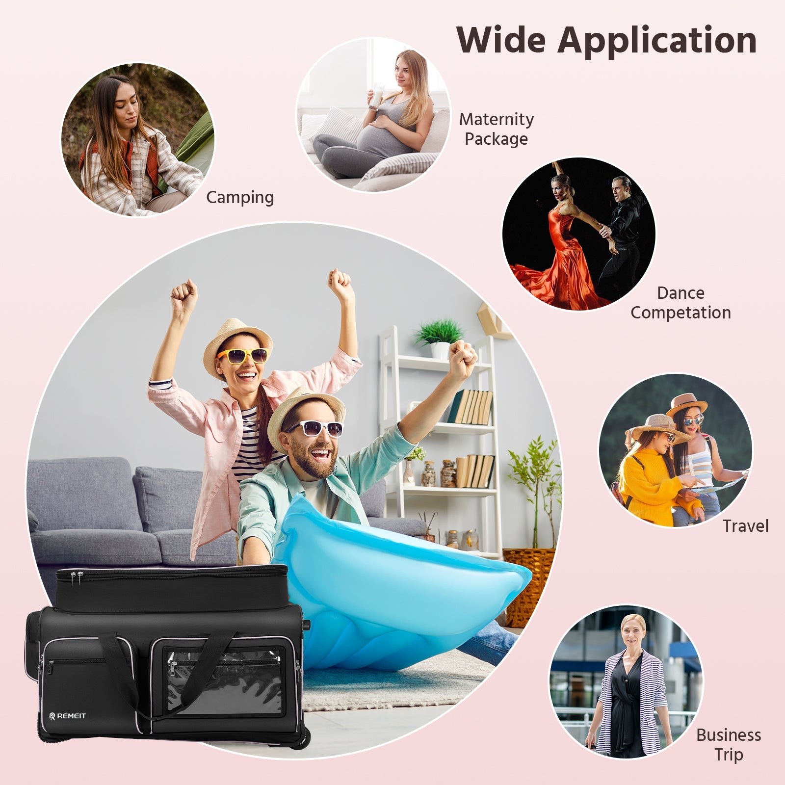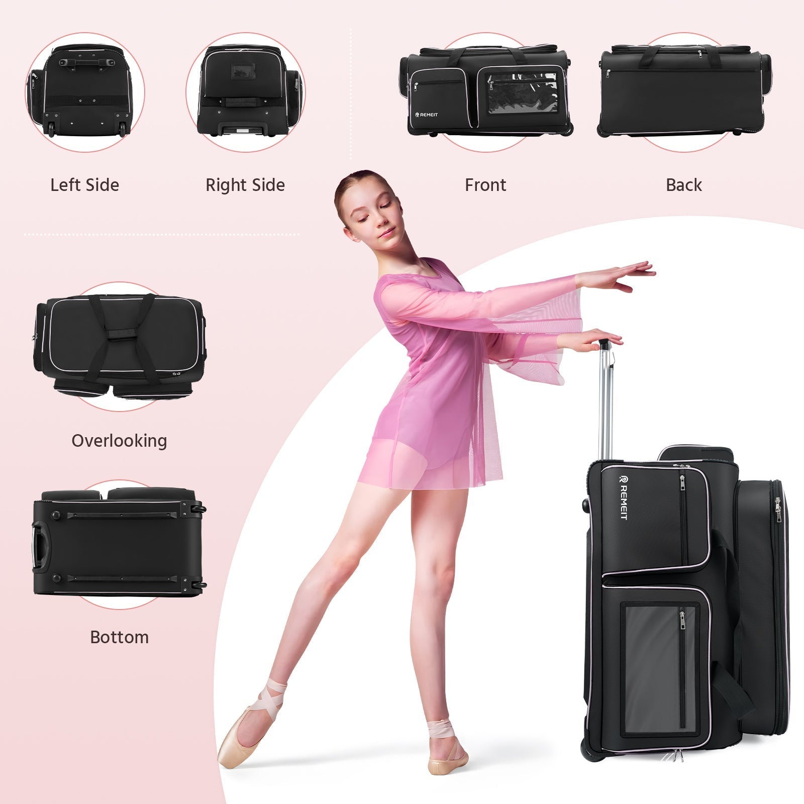 The REMEIT 28" Rolling Dance Bag with Garment Rack is designed for dancers, travelers, performers, athletes, and livestreamers who need a reliable, portable wardrobe on the go. With its expandable 120L capacity, pro-grade stability system, and upgraded durable fabric, it’s the ultimate competition dance bag trusted for backstage quick-changes and long-distance travel.